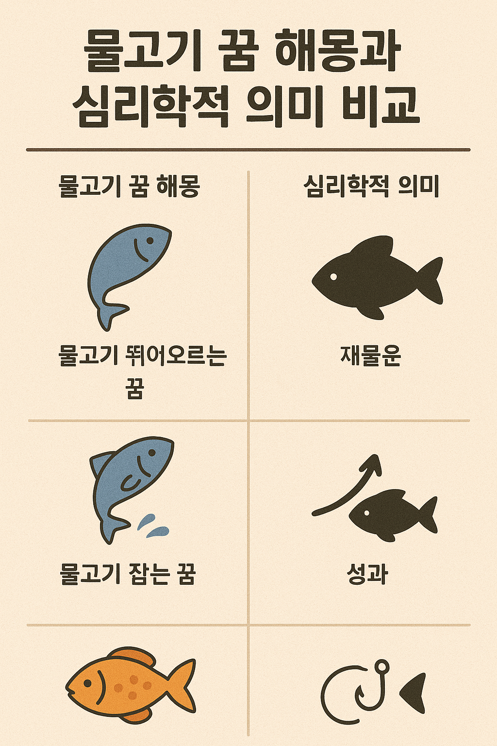 저는 개인적으로 중요한 결정을 앞두고 물고기 꿈을 꾼 적이 있는데, 해몽과 심리학적 해석을 함께 참고하면서 마음을 정리하는 데 많은 도움을 받았습니다. 여러분도 꿈을 단순히 길흉으로만 보지 않고, 내 마음의 신호로 바라본다면 더 깊이 있는 깨달음을 얻으실 수 있을 겁니다.
