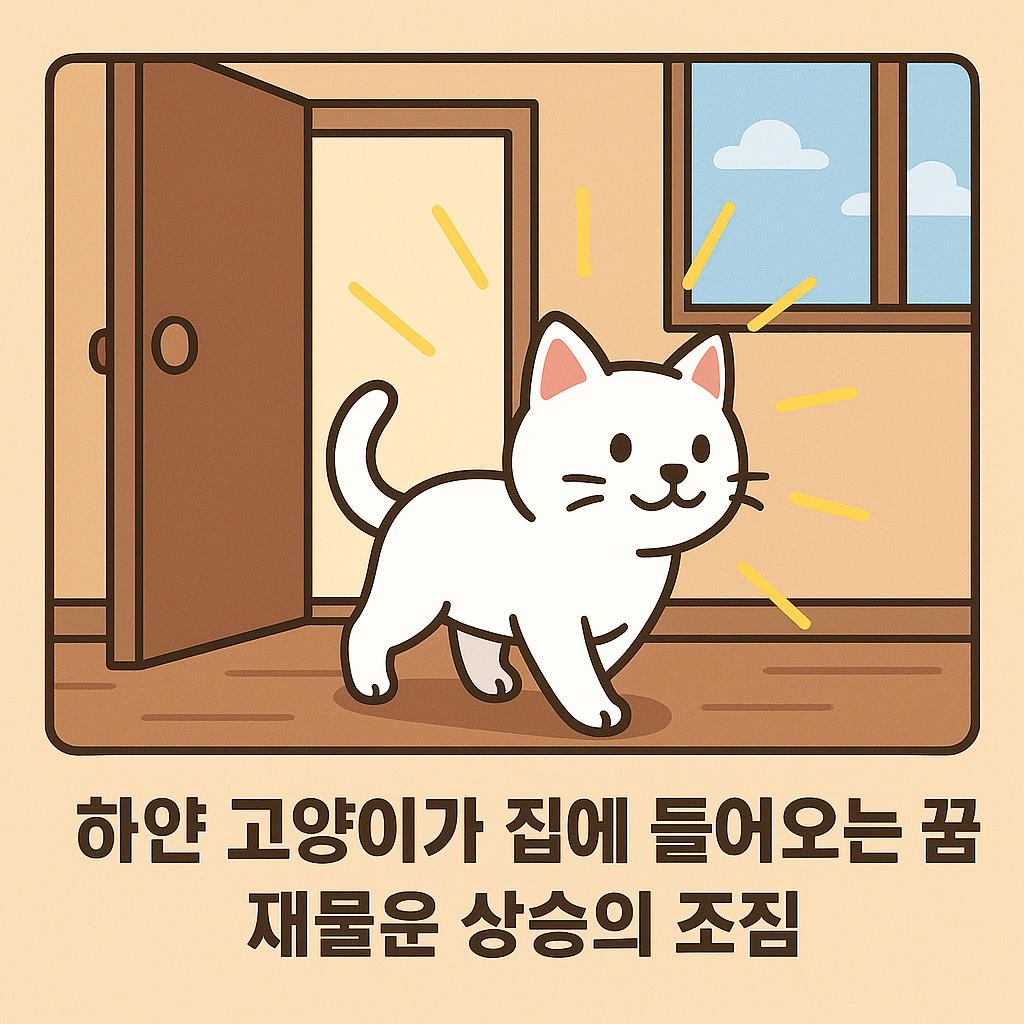 하얀 고양이가 집에 들어오는 장면은 "재물운의 상승"을 의미하는 대표적 길몽입니다.