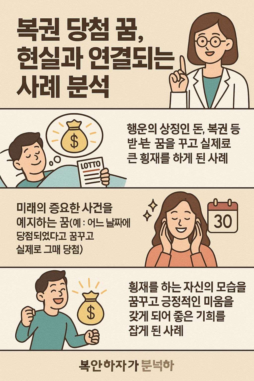이 사례는 복권 꿈이 단순한 예언이 아닌, 자기암시와 심리적 회복의 계기가 될 수 있음을 보여줘요.